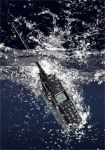 Automaticamente envia um sinal de emergência quando o transceptor fica na posição horizontal por tempo pré-programado.