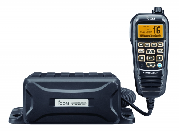 O IC-M400BB é formado por dois módulos na configuração "caixa preta". Todas as funções do rádio, incluindo a operação DSC podem ser acionadas pelo microfone COMMANDMICIV™, HM-195B/SW e o módulo de RF pode ser instalado em um local oculto.